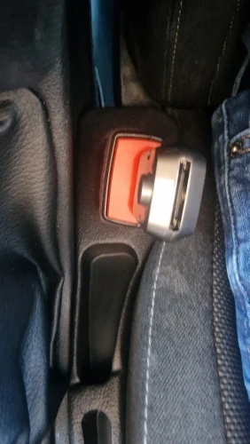 4. Insert the clip and you’ll have an instantly longer, safe seat belt.